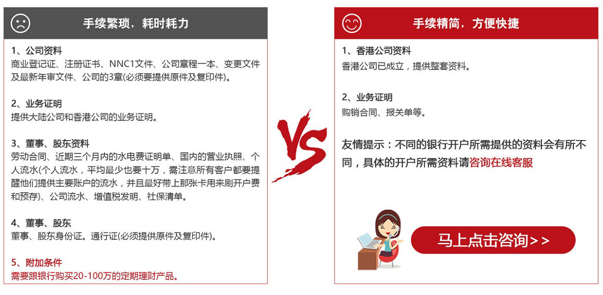 * 溫馨提示:戶口簽署人或公司董事如果是中國內地人士,必須持有中國護照或來往港澳通行證方可辦理開戶。